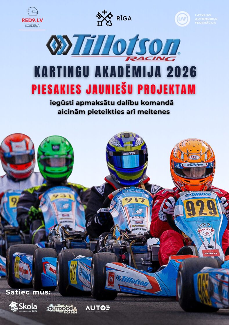 No 2026.gada 10. februāra tiek atvērta pieteikšanās jauniešu izglītojošajam projektam “Tillotson Kartingu Akadēmija 2026”, kas skolas vecuma jauniešiem (16-18gadi) sniedz unikālu iespēju piedalīties finansētā starptautiskā iniciatīvā. Projektu organizē RED9 SCUDERIA sadarbībā ar Tillotson Racing Latvija un atbalstītājiem.